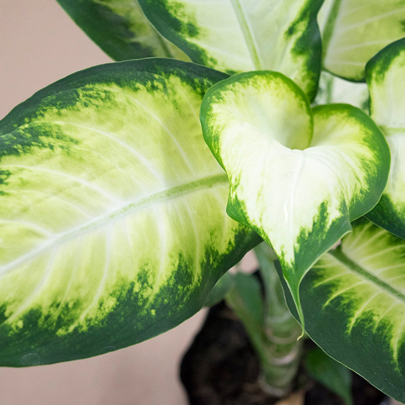 Es una de las plantas más cultivadas en interior, se caracteriza por las manchas claras en contraste con el verde obscuro de sus hojas.