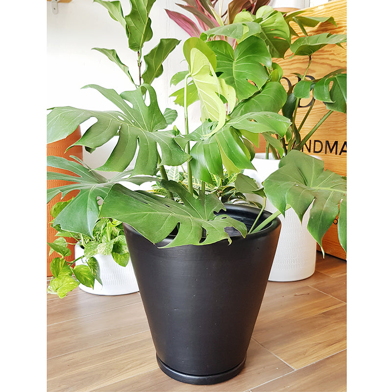 Una planta de follaje peculiar 'monstruoso'. Sus famosas hojas perforadas son una adaptación que permite que la luz del sol pase a través de ellas. Una especie muy resistente y de muy pocos cuidados.